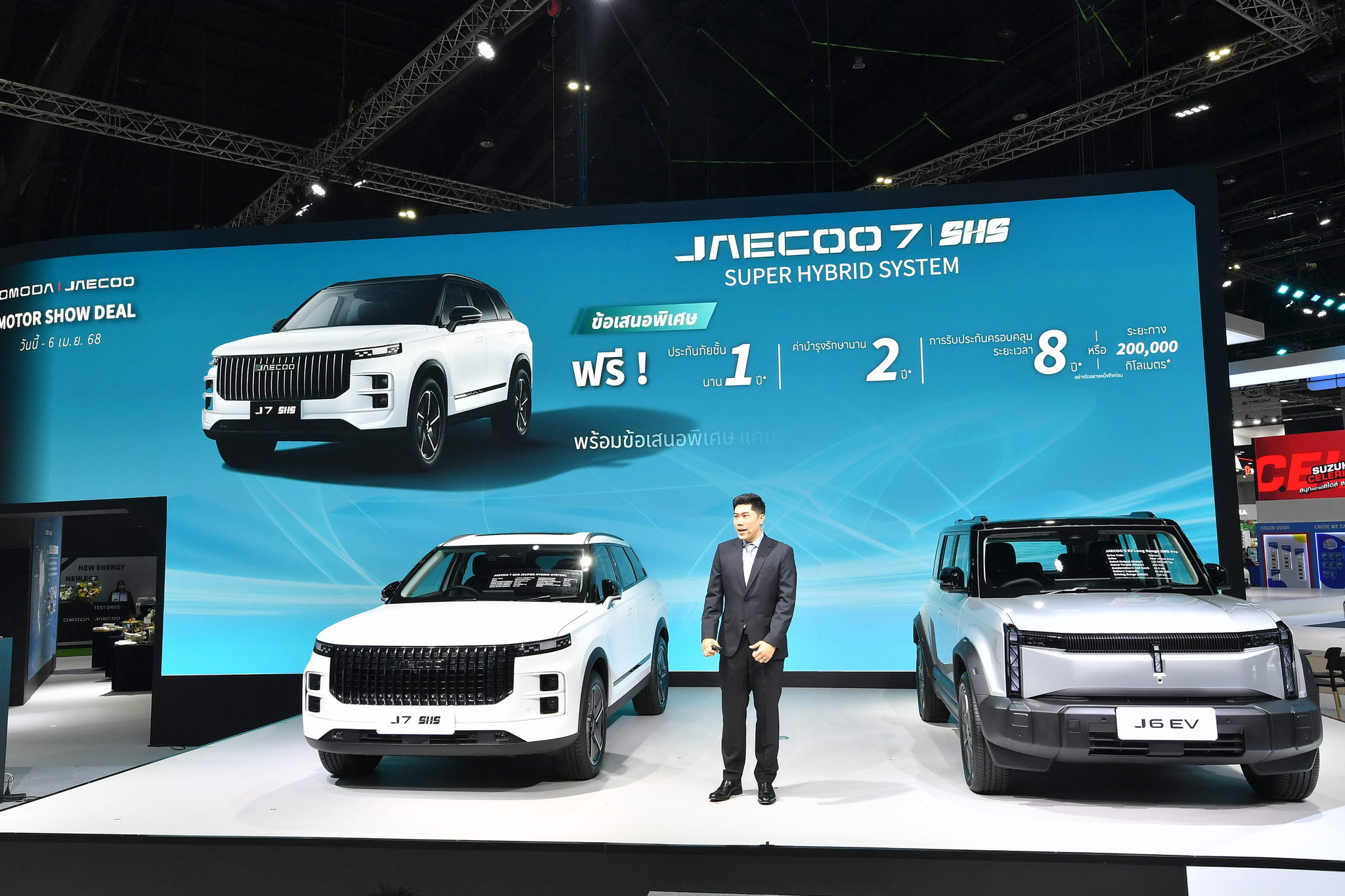 Különleges akciós autókiállítási akció JAECOO J6 EV-hez ( vagy iCAR 03- hoz Kínában ) Egy terepjáró elektromos jármű, amely kiemelkedik „ ONE BOX STYLE” dizájnjával , valamint modern elektromos járműtechnológiájával. Megkapta a „LEGJOBB OFF ROAD EV” díjat Maximum 100 000 baht engedménnyel jár