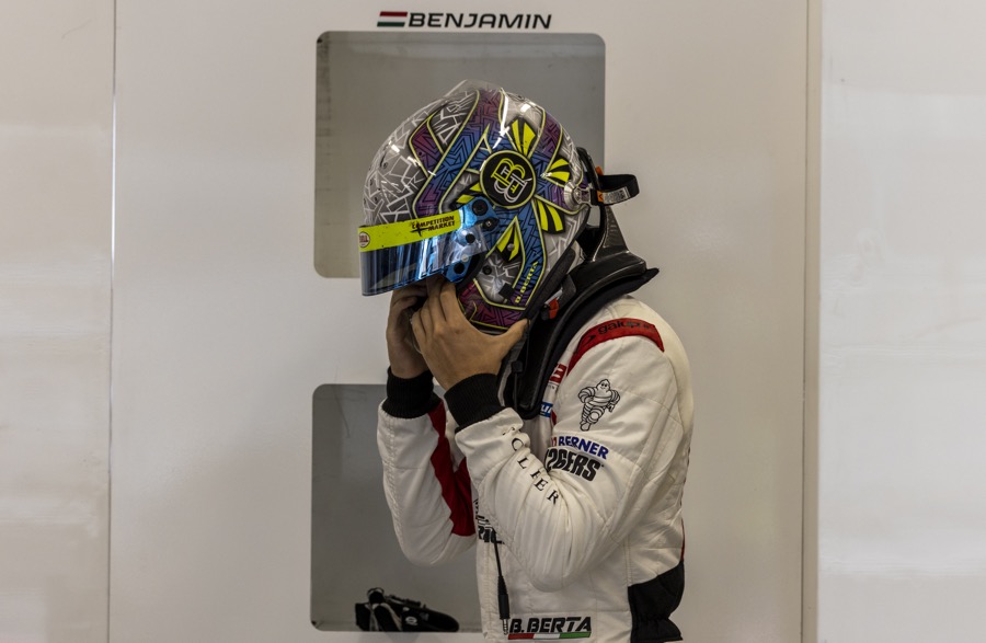 A súlycsökkentés minden felületbe beépült, a merész fehér „X” motívumokkal jelölt lecsupaszított ajtópanelektől a viaszos szövet műszerfalig – könnyű, tartós és egy kézzelfogható patinával bevonva, amely a kézzel végzett munkáról árulkodik. A felül a szabadon lévő bukókeret egyszerre ad struktúrát és hangsúlyt – ez egy olyan biztonsági funkció, amely az autó szűretlen versenyzési DNS-ére utal.
